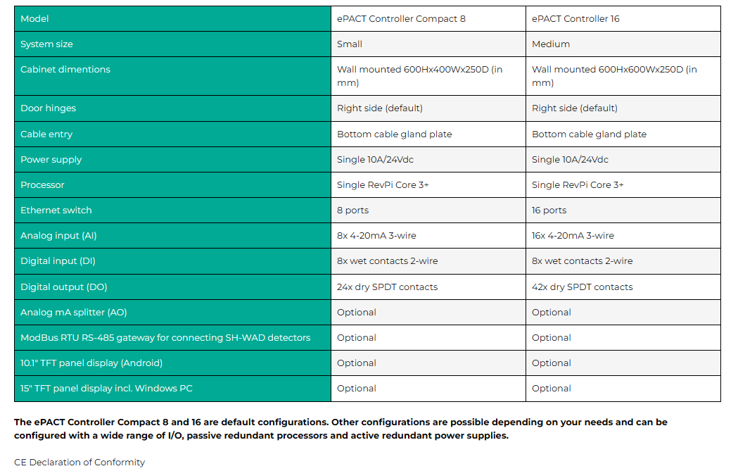 The ePACT Controller gas detection alarm system is based on the RevPi Core 3+ platform including New Cosmos embedded HTML alarm handling software and alarm configuration software ePact. The alarm system is very flexible in design and easily configured towards your needs. The gas detection alarm system runs on an in house designed program ePact for very stable and proven operation. The system is built in a free standing or wall mount cabinet depending on your requirements. The modular de-centralized design makes this alarm system suitable for many small to large size applications in many industries.